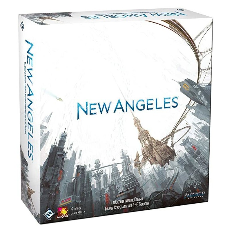 New Angeles la città più grande più ricca e più cosmopolita del mondo è uno splendente faro del progresso e dell'evoluzione umana. Ma questo successo ne fa anche un terreno fertile per le più potenti megacorp del mondo costantemente impegnate a surclassarsi a vicenda mostrando i loro muscoli politici ed economici. La battaglia tra questi giganti spesso travolge gli inferiori e i meno fortunati e trasforma la città in un gigantesco campo di battaglia per i potenti e i privilegiati che poggia su fondamenta di povertà e inquinamento. New Angeles è un gioco in cui da quattro a sei giocatori interpretano i ruoli delle megacorporazioni dell'universo di Android. I giocatori fanno affari e stipulano alleanze temporanee per ottenere influenza e superiorità finanziaria sui loro rivali corporativi tentando allo stesso tempo di preservare l'ordine e la produttività nella frenetica megalopoli di New Angeles.
