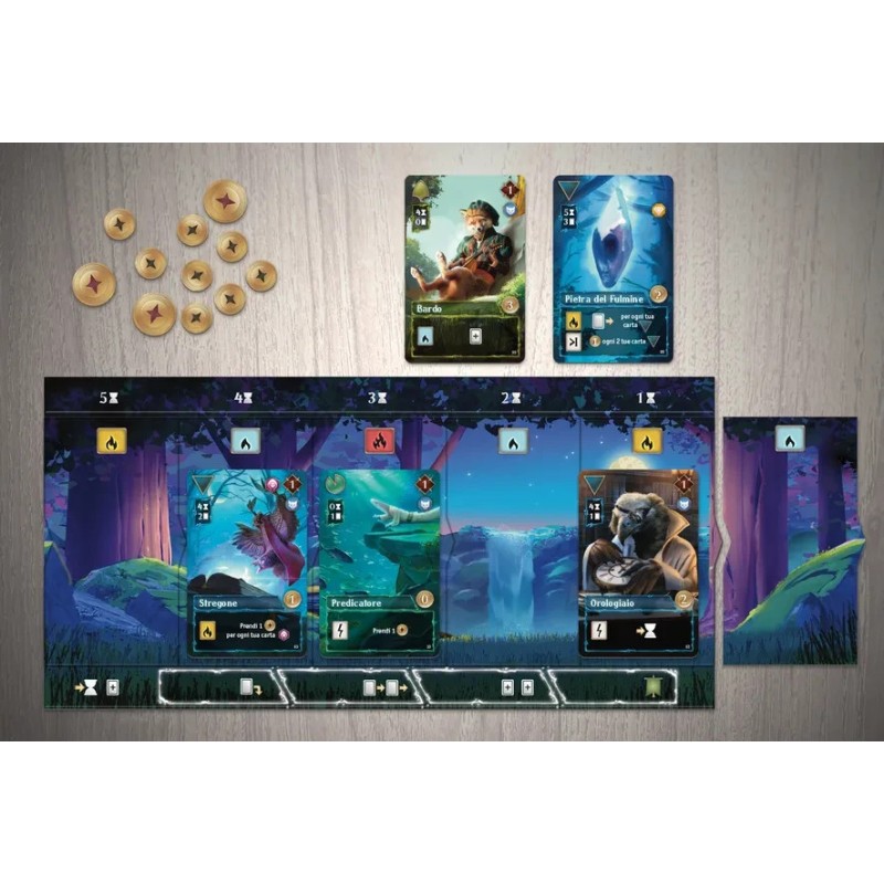 Echoes of Time è un gioco strategico per 2-4 giocatori. Oltre 100 carte con effetti unici vi permetteranno di costruire ogni volta un mazzo diverso. Un'innovativa meccanica di tessere scorrevoli vi guida nella gestione del tempo necessario alle vostre carte per diventare utilizzabili, controllando contemporaneamente il ritmo di attivazione dei loro effetti.